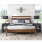 El diseño de transición de la colección Arlo permite una ubicación perfecta para satisfacer las necesidades de espacio para dormir de su hogar. La cama completa llega en una sola caja convenientemente empaquetada para incluir la cabecera el pie de cama los rieles y los listones. La cama con estructura de madera tiene un acabado en tono castaño su tono clásico es una adición decorativa versátil a su espacio. El sutil guiño al estilo Arts & Crafts realza su aspecto atemporal.