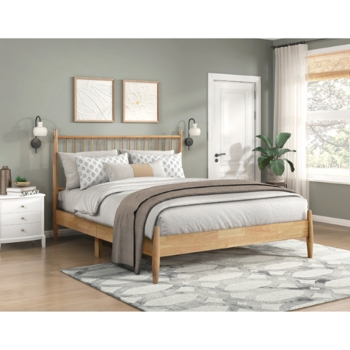 Con un aspecto que tiene sus raíces firmemente plantadas en el diseño moderno de mediados de siglo la colección Brickell es un lienzo versátil para crear un espacio que refleje su estilo personal. El acabado natural de la cama matrimonial le da un complemento neutro a sus preferencias decorativas. Las lamas verticales definen el cabecero mientras que el perfil bajo de las barandillas laterales y el pie de cama crean un marco sin obstáculos para la cama de la plataforma. La cama no requiere somier.
