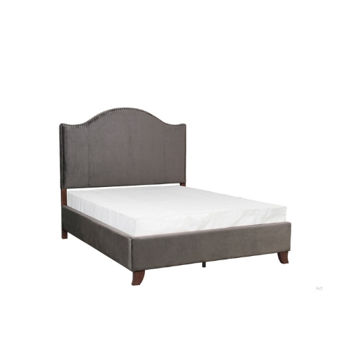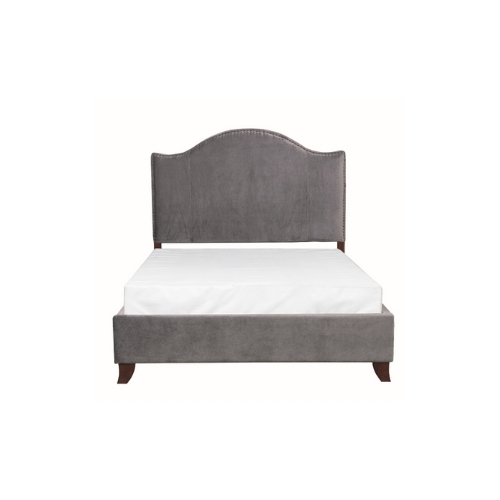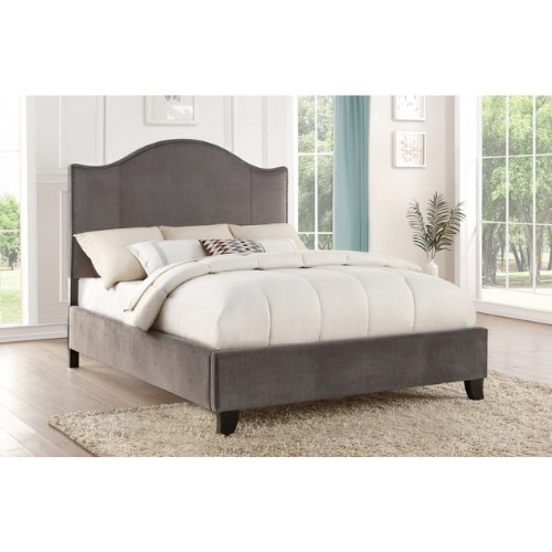 El estilo moderno y tradicional se logra con el diseño de la Colección Carlow. El perfil de la cabecera camelback se acentúa con cabeza de clavo que realza el aspecto tradicional. La tela de terciopelo gris cubre la cama completa para darle un toque elegante a la decoración de su dormitorio.