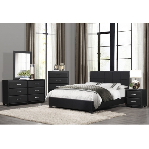 El diseño contemporáneo de la colección Lorenzi se ve reforzado por la adición de la duradera funda de piel sintética negra en el exterior de la cama completa. Esta colección proporcionará una adición única y elegante a su dormitorio.
