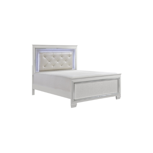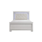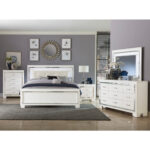 El glamour reina en el diseño de la Colección Allura. Enmarcando la cama Eastern King hay un acento decorativo de espejo biselado que mejora la iluminación de la retroiluminación LED táctil de la cabecera. El relieve de cocodrilo y los herrajes mejorados con cristal pulido acentúan audazmente el acabado blanco al igual que el inserto de cabecera con mechones de cristal de piel sintética blanco perla.