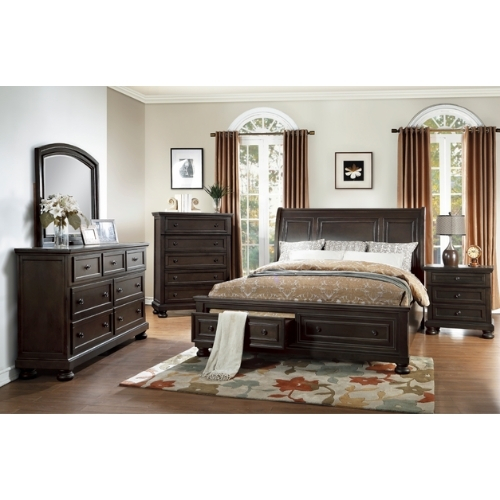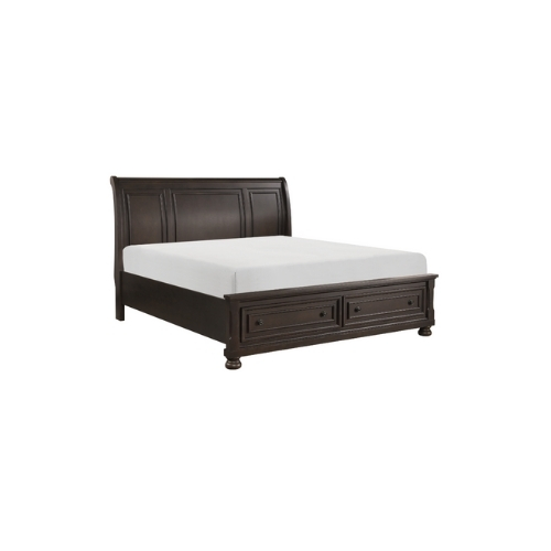 El estilo de transición casual aporta versatilidad a la ubicación de la Colección Begonia en varios entornos de dormitorio. El acabado marrón grisáceo contribuye distintivamente a la ejecución de diferentes estilos desde lo tradicional hasta lo casual country con herrajes de perilla que punctúan el frente del cajón en la base de la cama Eastern King. Los cajones de almacenamiento en la base de la cama proporcionan una forma de capacidad de almacenamiento adicional. Los pies redondeados sostienen la cama tipo trineo aportando un toque decorativo adicional al diseño de transición de la colección.