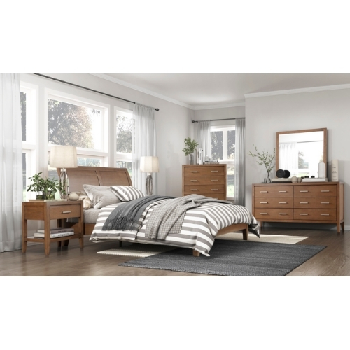 El estilo de transición de la colección Evans utiliza toques de diseño moderno para crear una adición estética versátil a su dormitorio. La cama de plataforma de perfil bajo Eastern King cuenta con una cabecera de trineo mientras que las líneas libres presentan un perfil clásico. Se utiliza un acabado de pincel de alambre de color marrón claro para aumentar la versatilidad estilística de la colección.
