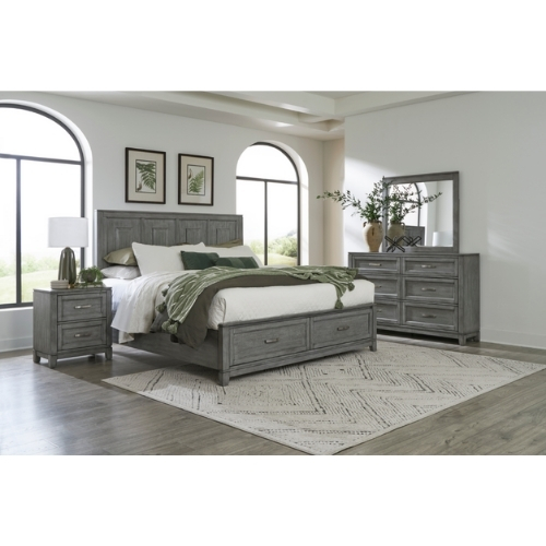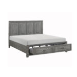 La colección Garretson combina líneas de transición con un estilo rústico para crear un complemento elegante para su dormitorio. El grano distintivo de la chapa de okume presenta un acabado gris. La cama Eastern King cuenta con herrajes de barra de metal en los frentes de los cajones del marco de la base de almacenamiento de perfil bajo los dos cajones crean espacio adicional dentro de su habitación para un almacenamiento suave y bueno.