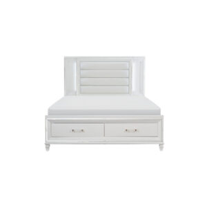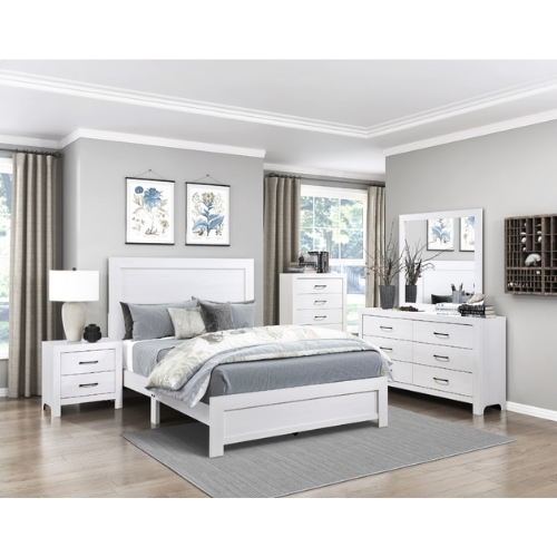 Las líneas modernas y el estilo rústico se combinan para crear el aspecto de la colección Corbin. La textura de la chapa de papel impresa en 3D está resaltada por un acabado blanco para un aspecto de madera realista. Un sutil encuadre define el perfil del cabecero y el pie de cama de los paneles queen lo que contribuye aún más al diseño sin restricciones de la colección. La construcción de la cama permite un empaque conveniente dentro de una caja.