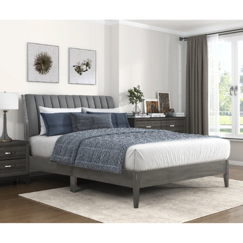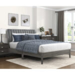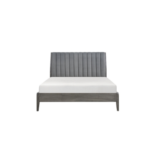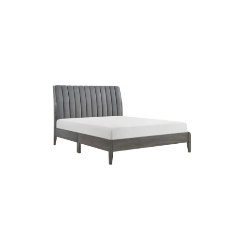 Diseñada para crear una opción de cama estilísticamente versátil la colección Dade es una sutil adición moderna al aspecto moderno de su dormitorio. La tapicería de tela de terciopelo gris cubre el diseño vertical de mechones de canal del cabecero queen proporcionando un complemento neutro a su ropa de cama decorativa. La estructura de madera del pie de cama y los rieles presenta un acabado gris. La construcción de la plataforma de la cama no requiere un somier.