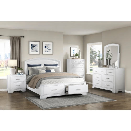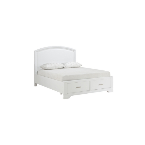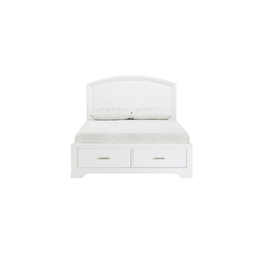 La intersección de líneas modernas y un estilo de transición discreto se mezclan para crear la Colección Hudson.El acabado blanco de la cama Queen presenta una adición decorativamente versátil a su dormitorio. Los herrajes de la barra cromados pulidos se encuentran frente a los cajones de almacenamiento del pie de cama de la cama. El diseño curvo del cabecero de la cama confiere una sutil forma decorativa a la colección.