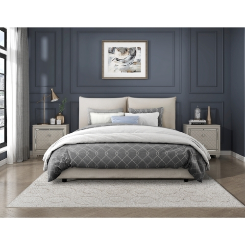 El diseño aerodinámico de la colección Linna crea un perfil elegante que combina exquisitamente con la visión moderna de su dormitorio. La tela tapizada en chenilla beige cubre la totalidad de la estructura de la cama queen dando un toque suave y un acento neutro a su espacio. La sastrería con filo de cuchillo se presta al perfil libre de la cama mientras que la cabecera acolchada crea un acento lujoso al aspecto moderno.