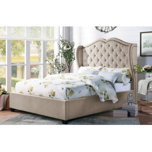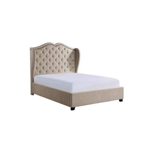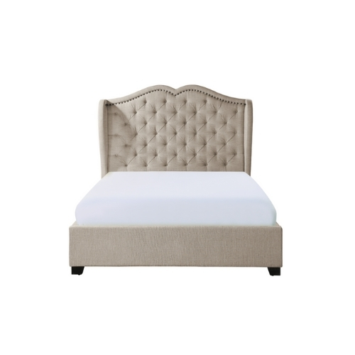 El marco tradicional moderno se utiliza para crear el aspecto de la colección Waterlyn. El diseño de ala alta de la cama Queen totalmente tapizada presenta una tela de tono neutro acentuada con un ribete de cabeza de clavo que define el perfil y un mechón de botones plisado que solidifica el aspecto tradicional de la colección.