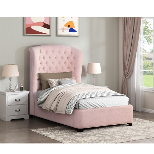Sirviendo como el gran punto focal de su dormitorio la colección Cameo es una hermosa declaración de sus elegantes preferencias decorativas. La cabecera del refugio estilo mansión cuenta con mechones de botones y un perfil de ala lo que solidifica su estilo clásico. Totalmente tapizada la tela de chenilla rosa que cubre la cama doble es un complemento texturizado y visualmente suave para su estética elegante.