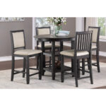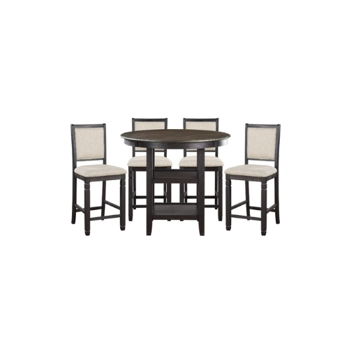 El estilo de transición de la colección Asher crea una plataforma versátil para inspirar la decoración informal de tu comedor. La base de soporte de la mesa redonda de altura de mostrador cuenta con un estante de exhibición que permite un acceso rápido y abierto a sus accesorios de mesa. El acabado marrón y negro sobre chapa de acacia sirve para resaltar la veta de la madera al tiempo que permite la máxima versatilidad en los acentos decorativos. Las sillas de altura de mostrador con marco de madera a juego cuentan con asientos de tela beige para complementar el contraste.