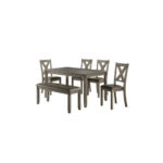 Diseñada con un estilo de transición para su espacio de comedor informal la colección Holders será un espacio de bienvenida para que sus amigos y familiares se reúnan durante las comidas y actividades sociales. El práctico embalaje de 6 piezas de la colección incluye una mesa cuatro sillas y un banco. Las sillas con estructura de madera con respaldo en X complementan perfectamente el diseño discreto de la mesa. Los asientos ligeros y en tonos neutros crean un contraste complementario con el acabado gris de la colección.