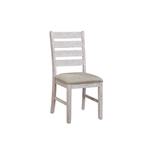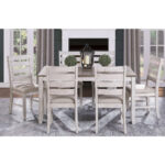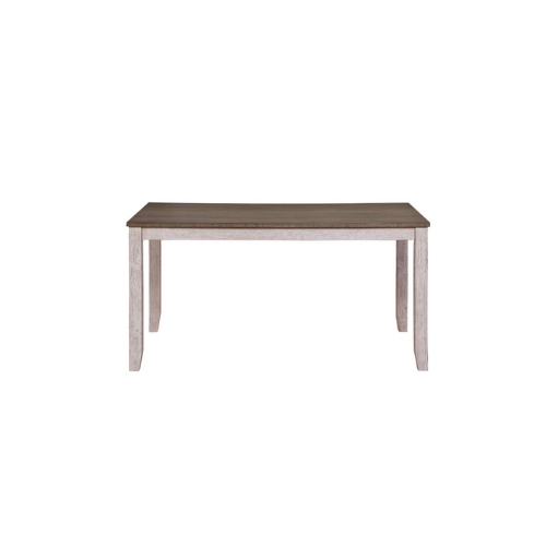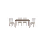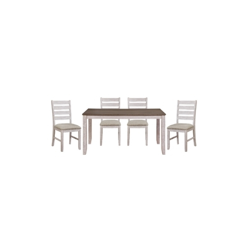 Con una paleta neutra y un diseño de transición la Colección Ithaca encajará perfectamente en tu comedor informal. El acabado bicolor que adorna la chapa de acacia (las patas y el delantal de un blanco grisáceo que soporta la tapa marrón medio) crea un lienzo para sus accesorios decorativos de mesa. La mesa de tapa fija está flanqueada por sillas con estructura de madera y asientos de tela de lino color trigo.