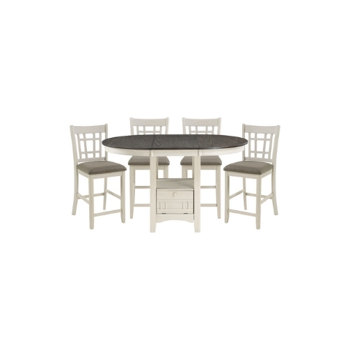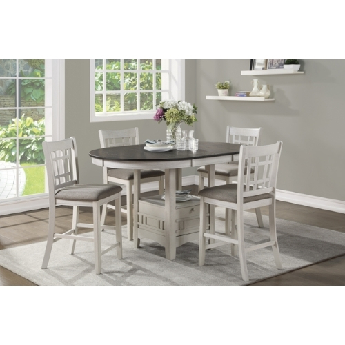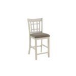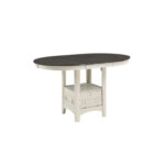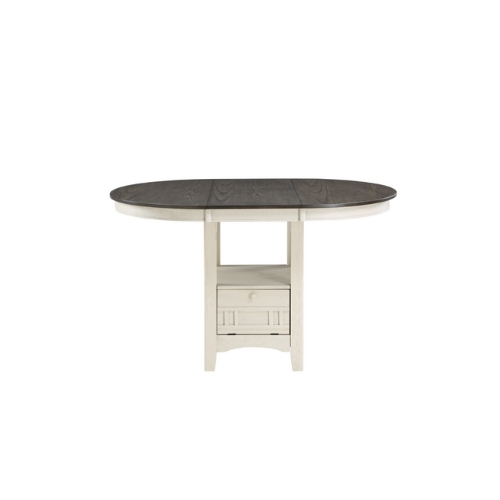 Utilizando los elementos tradicionales del estilo de misión la colección Junipero agrega la sensación del movimiento de diseño Arts and Crafts a su comedor informal. La base de la mesa de pedestal de la altura del mostrador soporta una parte superior ovalada y cuenta con almacenamiento accesible detrás de la puerta del panel abatible. La estructura exclusiva del estilo clásico comprende el diseño de la base de la mesa y las sillas de altura del mostrador a juego. El acabado blanco sobre chapa de roble sirve para resaltar las vetas de la madera.