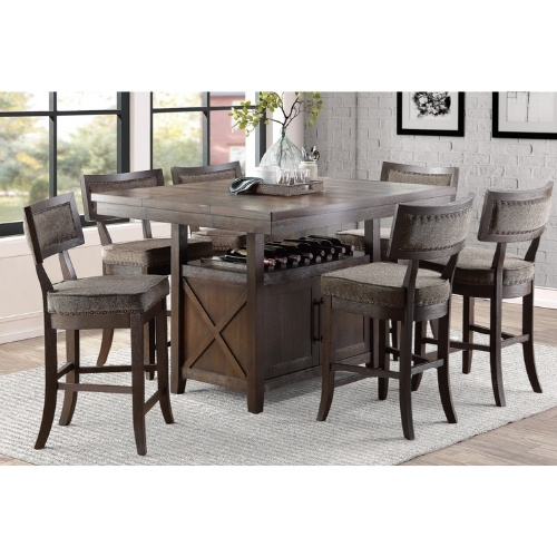 Diseñada para la estética rústica de su hogar la colección Oxton proporciona una amplia plataforma para sus actividades sociales y de comida. El tablero de mesa rectangular de altura del mostrador está soportado por una base de almacenamiento funcional lo que permite la colocación discreta de sus accesorios de mesa. Las sillas de 24 pulgadas de altura con respaldo contorneado y estructura de madera cuentan con detalles de cabeza de clavo y lujosos asientos de tela al tacto que complementan perfectamente el aspecto rústico de la colección Oxton.