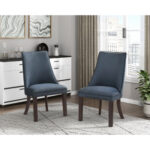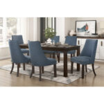 Las líneas sutiles y los toques de diseño Arts and Crafts crean el aspecto clásico de la colección Paulson. El estilo de transición de la mesa permite versatilidad de maridaje dentro del ambiente decorativo de su hogar. Se utiliza un acabado marrón oscuro para resaltar el grano distintivo de la chapa de acacia. Las sillas emparejadas que complementan el diseño de la mesa cuentan con patas de madera con acabado en nogal oscuro ribete a medida asiento contorneado y tapicería de tela texturizada azul grisácea.
