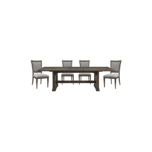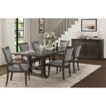 Con un estilo que se adapta a la estética de transición de su hogar la Colección Sarasota seguramente se convertirá en una plataforma perfecta para sus actividades a la hora de comer. La chapa de fresno se realza con un acabado marrón de madera flotante para una estética maravillosamente desgastada. El tablero de la mesa llama la atención con su patrón de chapa en forma de cuadrante en V. La hoja de almacenamiento automático permite la expansión de la mesa a su longitud total de 102 pulgadas.