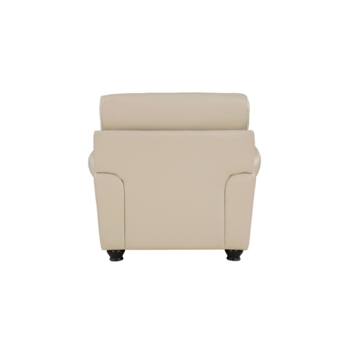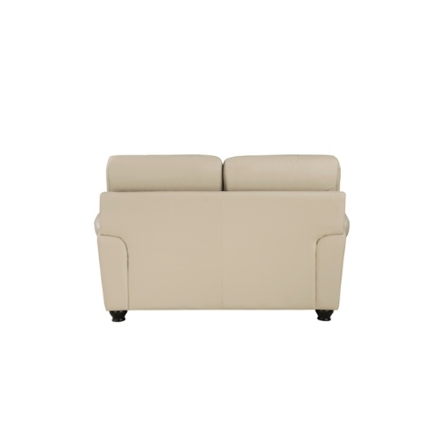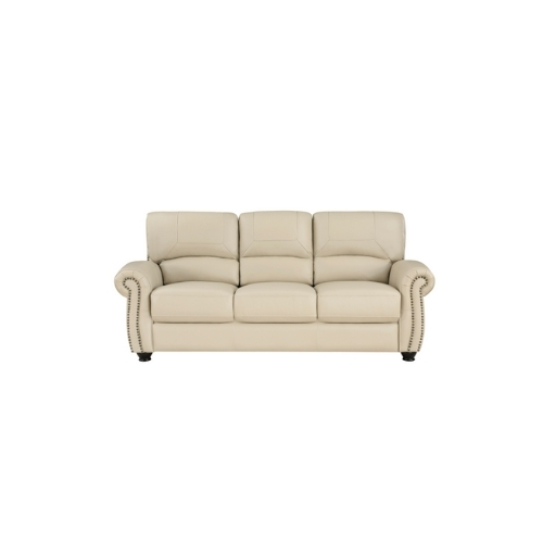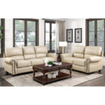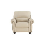 El diseño tradicional y los acentos clásicos se combinan para crear el aspecto atemporal de la colección Foxborough. El cuero de grano superior en tono crema cubre los lujosos asientos del sofá el sofá de dos plazas y la silla en todos los lugares donde toca la mano con el juego de cuero sintético que cubre las áreas restantes. El perfil de la disposición de los asientos está definido por los brazos elegantemente enrollados los respaldos de los asientos de felpa y los adornos en cabeza de clavo.