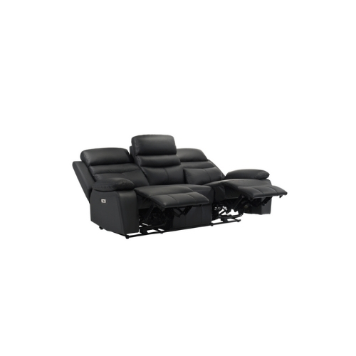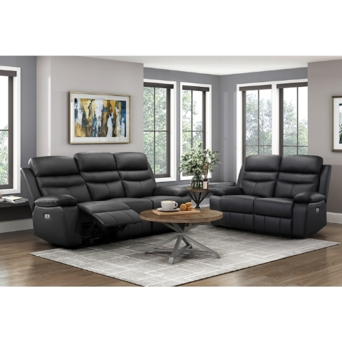 El aspecto versátil de la colección Hancock combinado con la sensación del cuero de grano superior y el reclinado eléctrico ayudará a crear un espacio acogedor y cómodo dentro de su hogar. Los extremos reclinables dobles del sofá y el sofá de dos plazas así como la silla reclinable se acoplan con un toque a los controles eléctricos montados en los laterales. La sutil estructura moderna del sofá el sofá de dos plazas y la silla está cubierta en cuero 100 por ciento de grano superior donde el cuerpo se toca con cuero sintético que cubre las áreas restantes su tono negro complementa la decoración de su hogar.