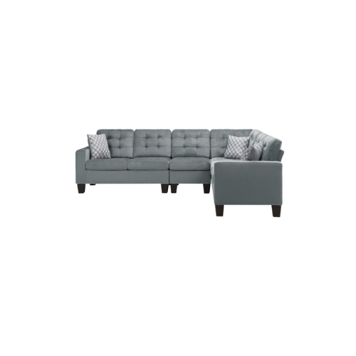El sutil estilo tradicional proporciona un aspecto limpio y clásico para su hogar en la colección Lantana. El seccional permite la ubicación perfecta dentro de su sala de estar. Tela gris con almohadas en contraste que realza el aspecto y la versatilidad para colocarla dentro de una serie de decoraciones del hogar. También disponible en chocolate.
