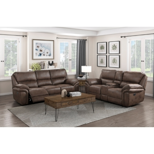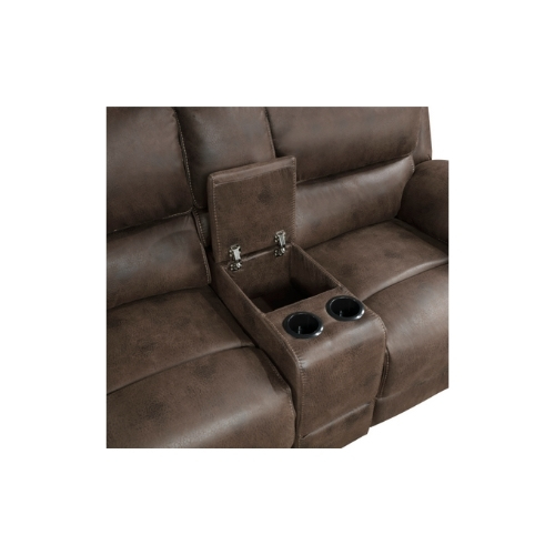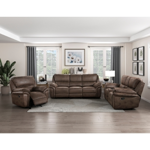 El diseño moderno y lujoso de la colección Proctor proporciona una plataforma para la relajación ya sea viendo un gran partido con sus amigos o acomodándose para ver una película con la familia. El perfil contorneado de la colección está cubierto de microfibra pulida marrón lo que proporciona un toque suave a su experiencia sentada. Con un tirón de la lengüeta montada lateralmente el mecanismo de reclinación se activa lo que facilita que los sillones reclinables del grupo de asientos pasen a la posición prona. El sofá de dos plazas cuenta con una consola con almacenamiento oculto así como portavasos para un uso funcional conveniente.