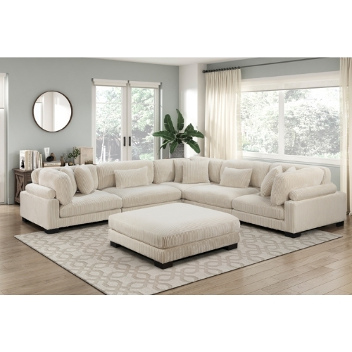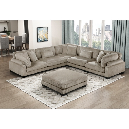 Configurable para su espacio disponible la colección Traverse permite agregar y separar piezas para una experiencia de asiento personalizada. La unidad de esquina la silla sin brazos y la otomana disponibles se pueden mezclar y combinar para adaptarse a sus necesidades creando configuraciones tradicionales desde un sofá o un sofá de dos plazas hasta una creación seccional imaginativa. La tapicería de tela de pana gris-beige-topo y negra afelpada crea una extensión lujosa para una experiencia suave al tacto. El asiento de la esquina cuenta con dos almohadas respaldo y reposabrazos ajustables y cojines reversibles. La silla sin brazos cuenta con una almohada lumbar y cojines reversibles. La versatilidad en la colocación de la otomana se deja a su visión creativa utilizándola como una unidad independiente o como parte de una configuración más grande.